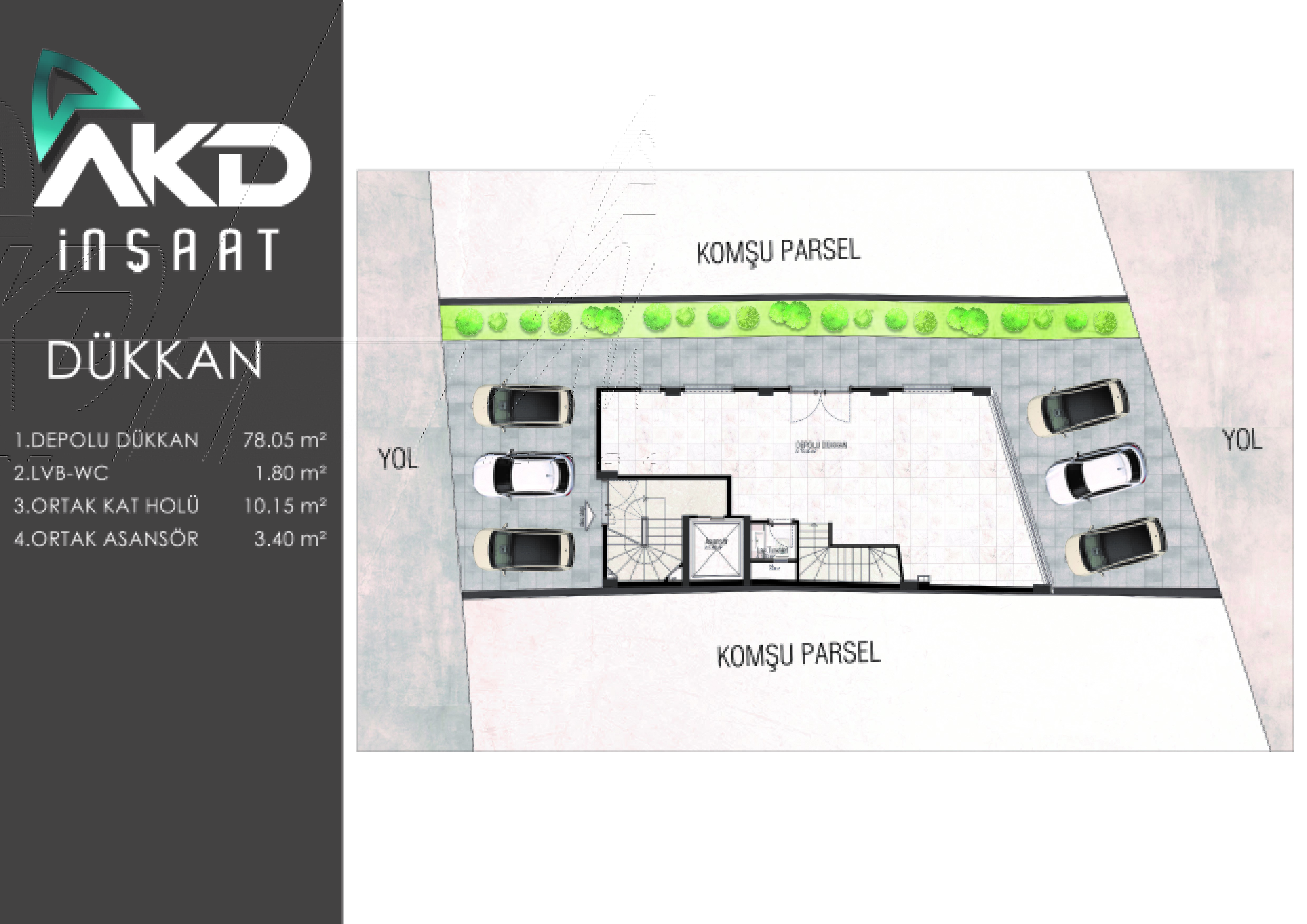 AKD İnşaat güvencesiyle hayata geçirilen AKD Plaza, modern mimarisi ve işlevsel tasarımıyla iş dünyasına yeni bir soluk getiriyor. Şehrin gelişen ticari bölgesinde konumlanan AKD Plaza, hem yatırım hem de kullanım açısından yüksek değer sunan bir projedir.